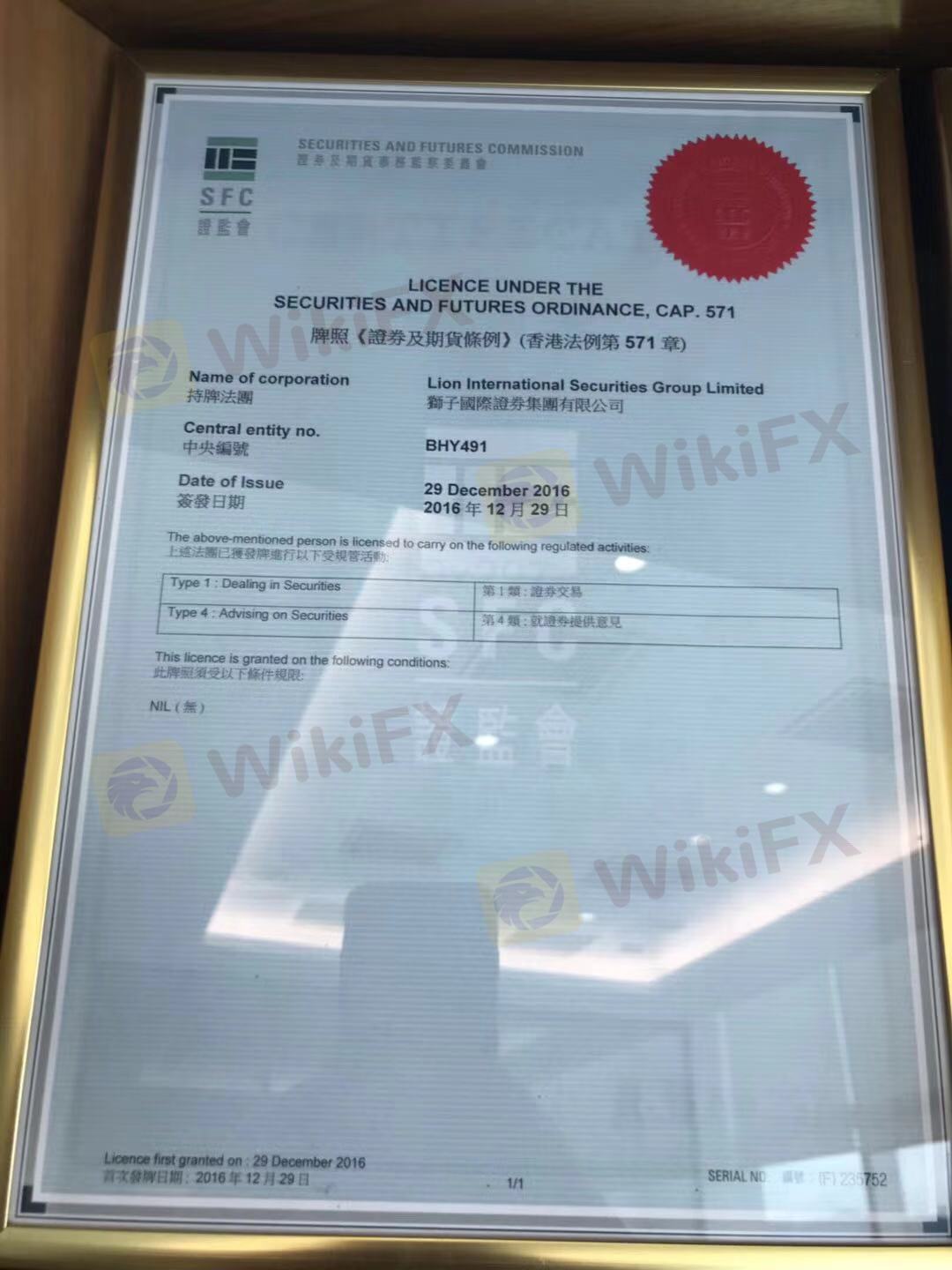 狮子国际证券集团有限公司(Lion International Securities Group Limited)为香港证监会认可的持牌法团(中央编号:BHY491),持有第1/4类受规管活动牌照,允许开展证券交易相关的系列业务。