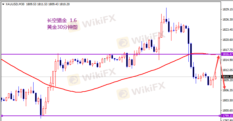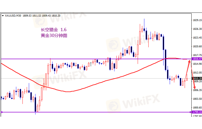 黄金反弹1816空,回撤1800附近多。