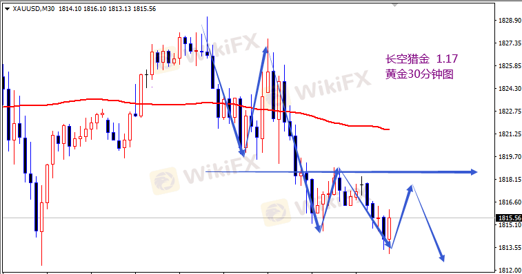 黄金反弹1818开空,止损1823,目标1805一线,破位继续下看。