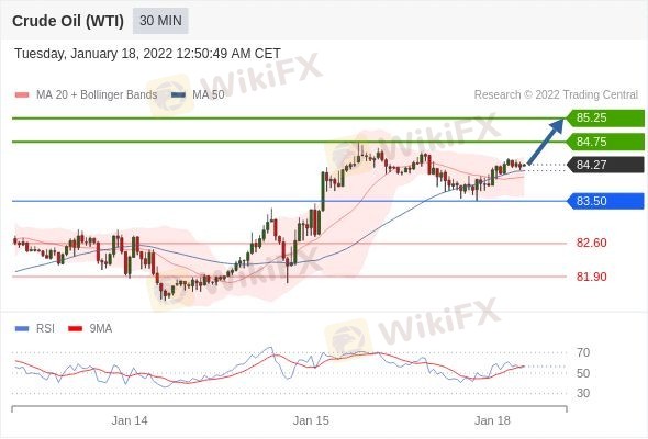 交易策略: 在 83.50 之上,看涨,目标价位为 84.75 ,然后为 85.25 。