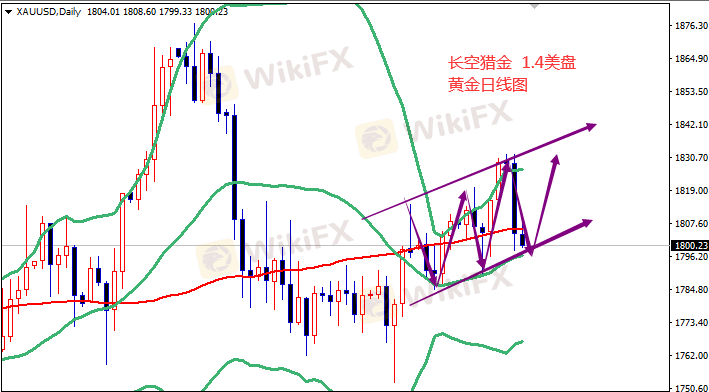 日线的强支撑位在1796附近,行情跌至1798多,若下跌1796再补仓多。