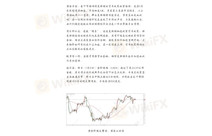 技术面:昨日(1月13日)金价振幅(0.86%)超过了周三CPI公布当晚。在目前正欲突破新年之初留下的高点之际,日内呈现震荡盘面也属正常。昨日盘中低点接近13日均线,日线收盘长下影阴线暗示13日均线支撑有效。日内压力1826美元。