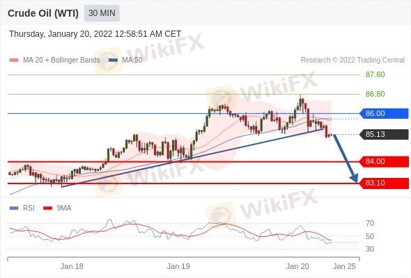 交易策略: 在 86.00 之下,看跌,目标价位为 84.00 ,然后为 83.10 。