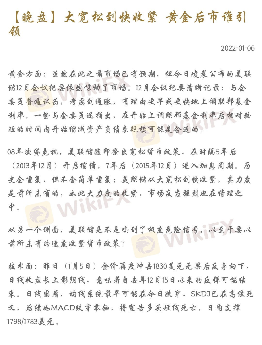 【晚盘】大宽松到快收紧 黄金后市谁引领