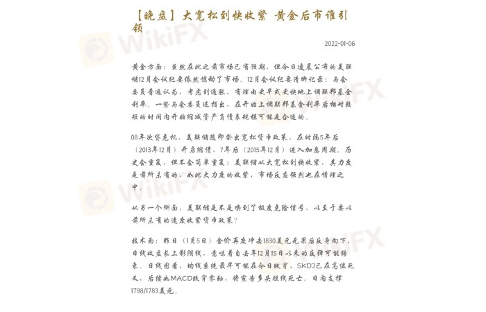 黄金方面:虽然在此之前市场已有预期,但今日凌晨公布的美联储12月会议纪要依然惊动了市场。12月会议纪要清晰记录:与会委员普遍认为,考虑到通胀,有理由更早或更快地上调联邦基金利率。一些与会委员还指出,在开始上调联邦基金利率后相对较短的时间内开始缩减资产负债表规模可能是合适的。