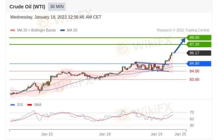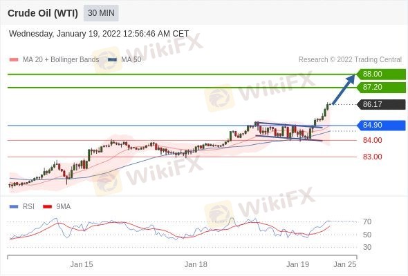 交易策略: 在 84.90 之上,看涨,目标价位为 87.20 ,然后为 88.00 。
