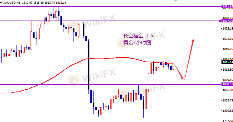 黄金1808开多,止损1803,目标1825-1830区间。