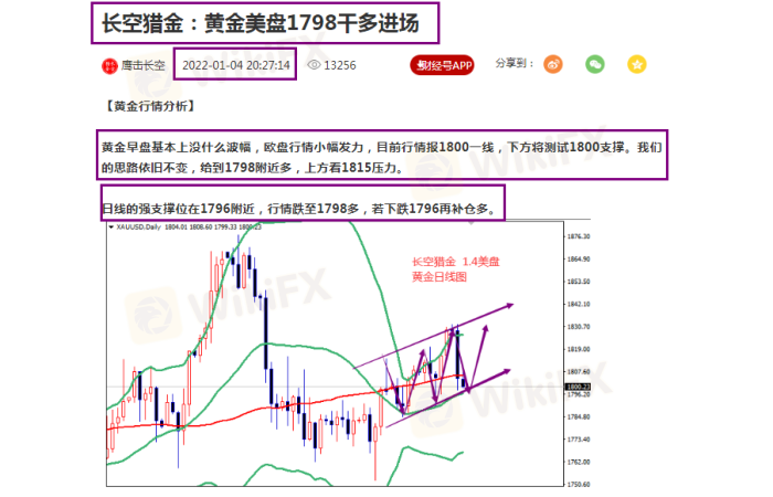 黄金昨日短幅下行假突破1800一线,长空在最低点1798干多,完美止盈1815一线,全网干多的没几个,基本上都是在追空。昨日在日线上有很明显的支撑位,追空肯定是不明智的,日内还是区间看涨为主。
