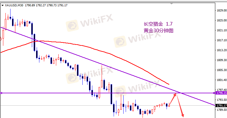 黄金昨日美盘多次失守1790支撑,幸好没有打掉我们的止损,多单反弹上去小赚出局了。行情瞬息万变,今日是一月一次的非农,行情转势,我们也要跟着转变,日内反弹先空。