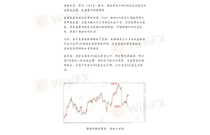 美国食品和药品监督管理局(FDA)授权12-15岁的儿童使用第三剂辉瑞疫苗,注射间隔从六个月缩短至五个月,尽管疫情全球蔓延,但各国努力避免大规模的封锁措施,市场情绪仍旧表现乐观,削弱了黄金的吸引力。