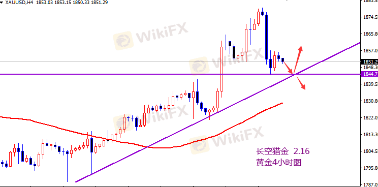 黄金日线级别k线收长阴线下跌,但4小时不破中轨支撑,微盘也有反弹。黄金2小时级别ma38均线有支撑运行,黄金3小时级别布林带中轨有支撑,黄金关注下方支撑1845,如果有效支撑可布局多单。