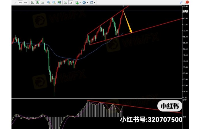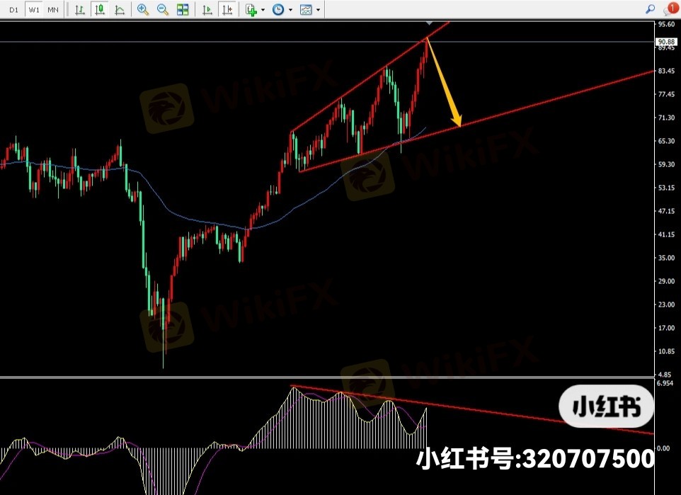 原油本周震荡三日后连续上涨两日,周线收阳。但荣生认为这是加速赶顶的迹象。理由是周线七连阳,最高点93.4附近已经打到开口喇叭型上边缘,而且最重要的是周线macd三次顶背离,下跌概率非常大,一旦形成单边将会有20美金以上的跌幅。操作思路上如果做中长线布局,建议92.4-93.0可轻仓布局空单,等再次破新高小时图或者四小时顶背离加仓空单,或者日线顶部形态出来再加仓空,止损放5美金,目标看到20美金,重点提醒:习惯重仓或者没有操作中长线经历者不要参考交易。短线交易者可参考荣生每日策略。