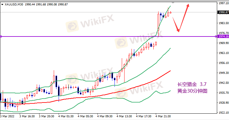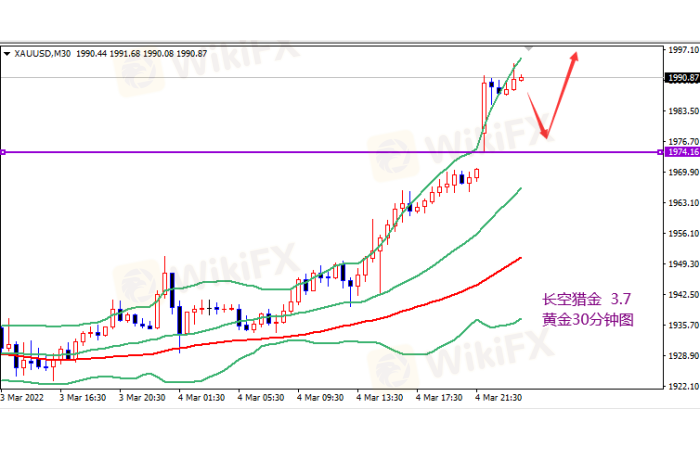 黄金继续延续周五美盘走势,早盘直接高开高走,行情测试2000点,多头非常的强势,俄乌消息面还在发酵当中,黄金避险做多。