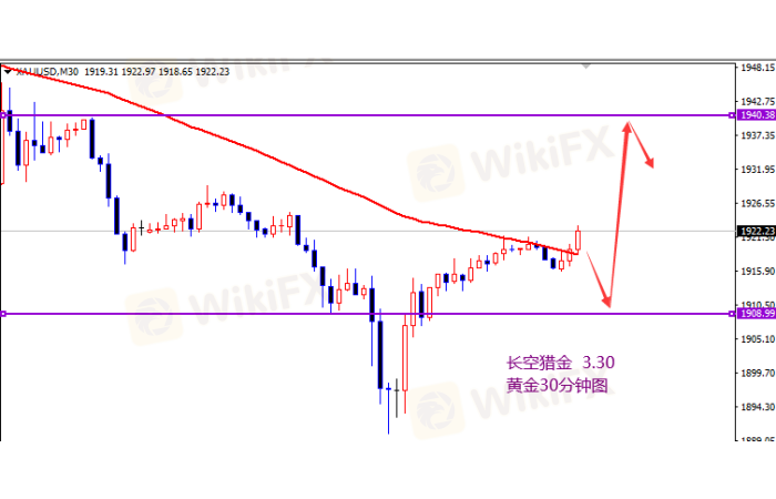 黄金昨日在亚欧盘布局空单,晚间回撤反弹1900附近再反手布局多单,黄金多空反复,日内或将再延续,多头反攻后再回撤下跌,日内多空都有机会。