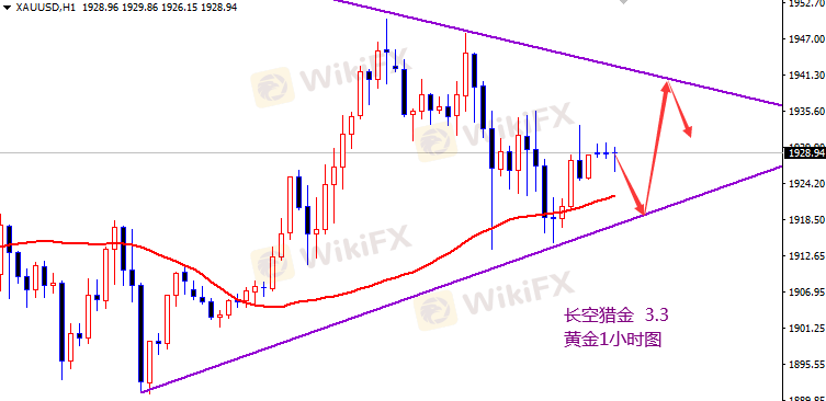 黄金反弹1945空,回撤1915多。