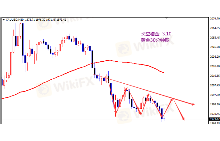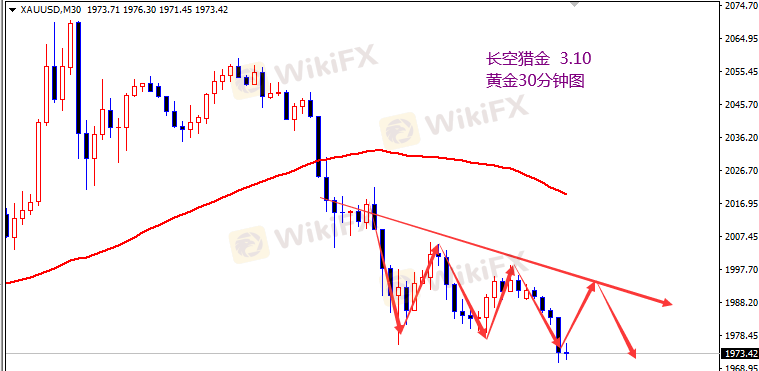 从盘面上看黄金日K一根大阴柱直接回吐前日全部涨势,特别是行情突破4小时中轨支撑2000点后再次下行,支撑变压力。1小时短线级别排列下跌,行情反弹短线压力1990可先空。(注意行情随时受消息面刺激反弹,带好止损)