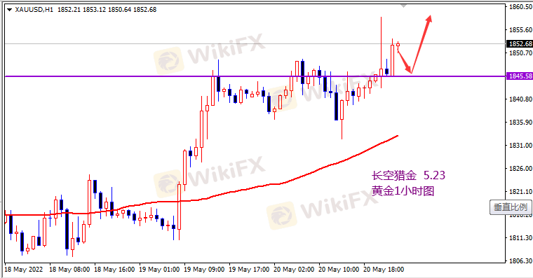 黄金触底继续收阳反弹,行情一根大阳线直接站上1850上方,多头暂时占据优势,上方压力还未到位,日内先以回撤多为主,随时关注触顶回落。
