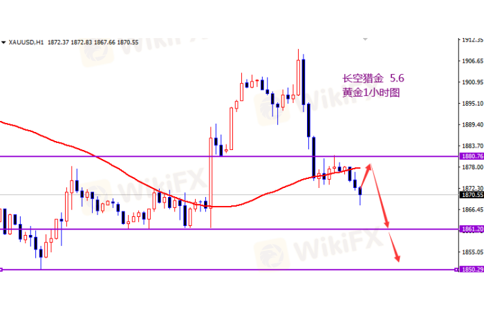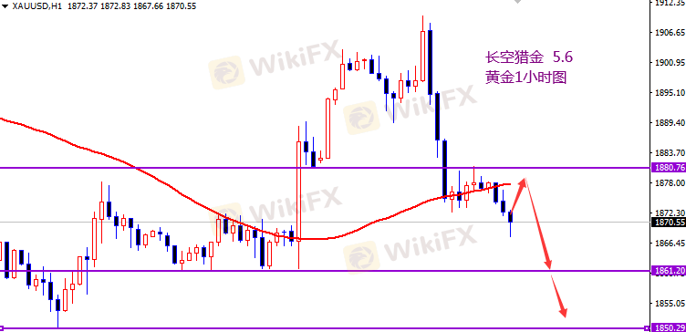 黄金1880开空,止损1886,目标1860-1850一线。
