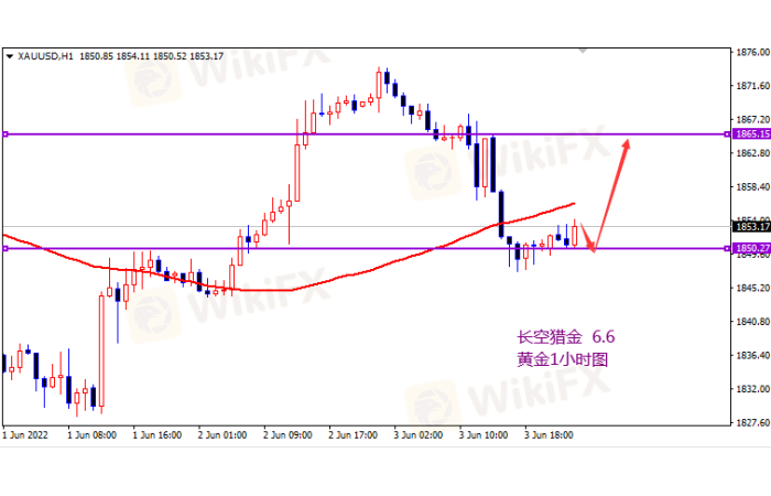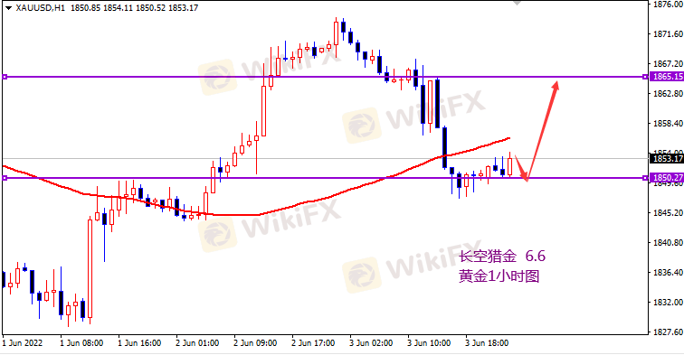 从盘面上看,日线级别MACD依然是金叉向上形态,行情下跌也受阻于中轨支撑,4小时级别一波连阴式回吐,重新回到布要道中轨附近震荡,局部单边力度不足,1小时级别有触底反弹迹象,日内先以多为主,回撤1850附近就可直接多,上方关注1865一线压力。