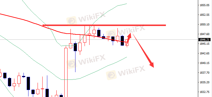 黄金策略:黄金线下实盘1847已空,空仓的朋友黄金继续在1846-47附近空,止损1852,目标1835。