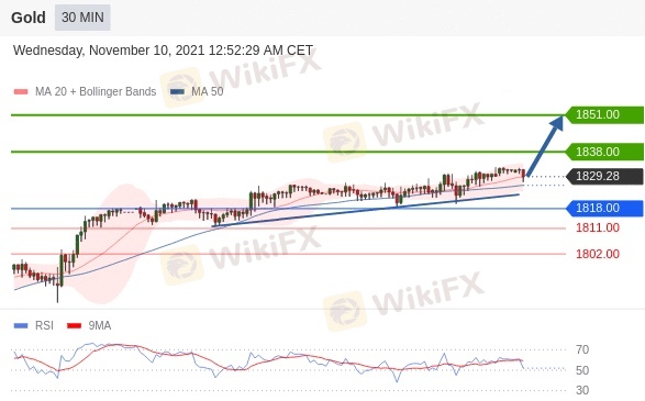 交易策略: 在 1818 之上,看涨,目标价位为 1838,然后为 1851。