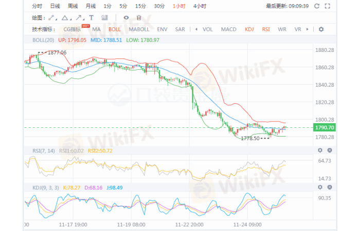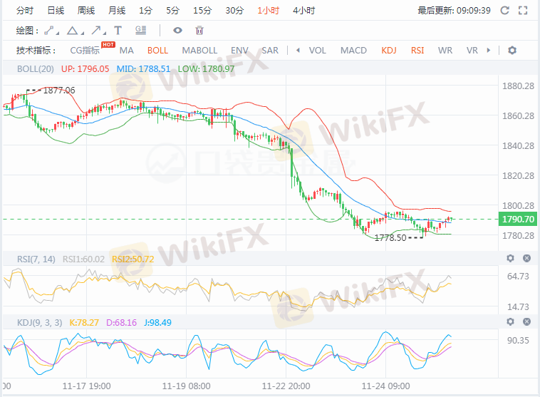 周三(11.24日),国际金价走高,但美元走强以及市场预计美联储可能更早加息,限制了金价反弹空间。市场预计,在消费者物价飙升的情况下,刚获得连任提名的美联储主席鲍威尔可能会加快美联储的货币政策正常化步伐。