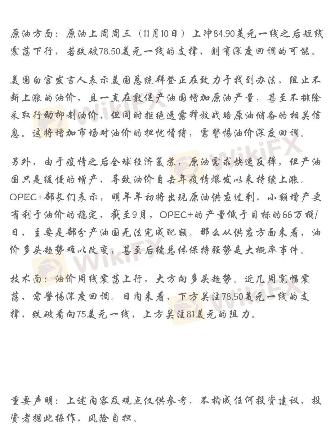 特别提示,WikiFX所列信息仅供参考,不构成投资建议。外汇平台由客户自行选择,平台操作带来的风险,与WikiFX无关,客户需自行承担相关后果和责任。