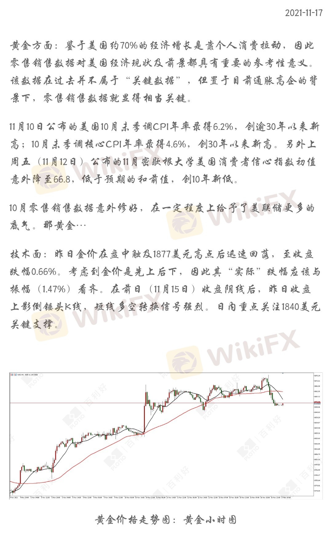 10月零售销售数据意外修好,在一定程度上给予了美联储更多的底气。那黄金…