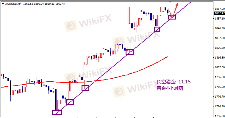 黄金继续看涨是毋容置疑的,不难发现每次黄金的回撤都带来了一波新高,虽然上方受阻1870一线,但突破也是迟早的事,日内我们继续逢低做多,只要没有出现空头信号,坚定看涨。