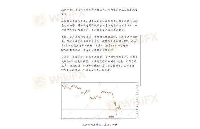 另外,变异毒株横空出世,市场担忧情绪飙升,风险资产遭到打压,恐慌情绪使得原油需求恶化,使得油价暴跌超过10%,为去年4月以来最大的单日跌幅。本周四(12月2日)将会召开OPEC+部长会议,是否会继续增产值得关注。