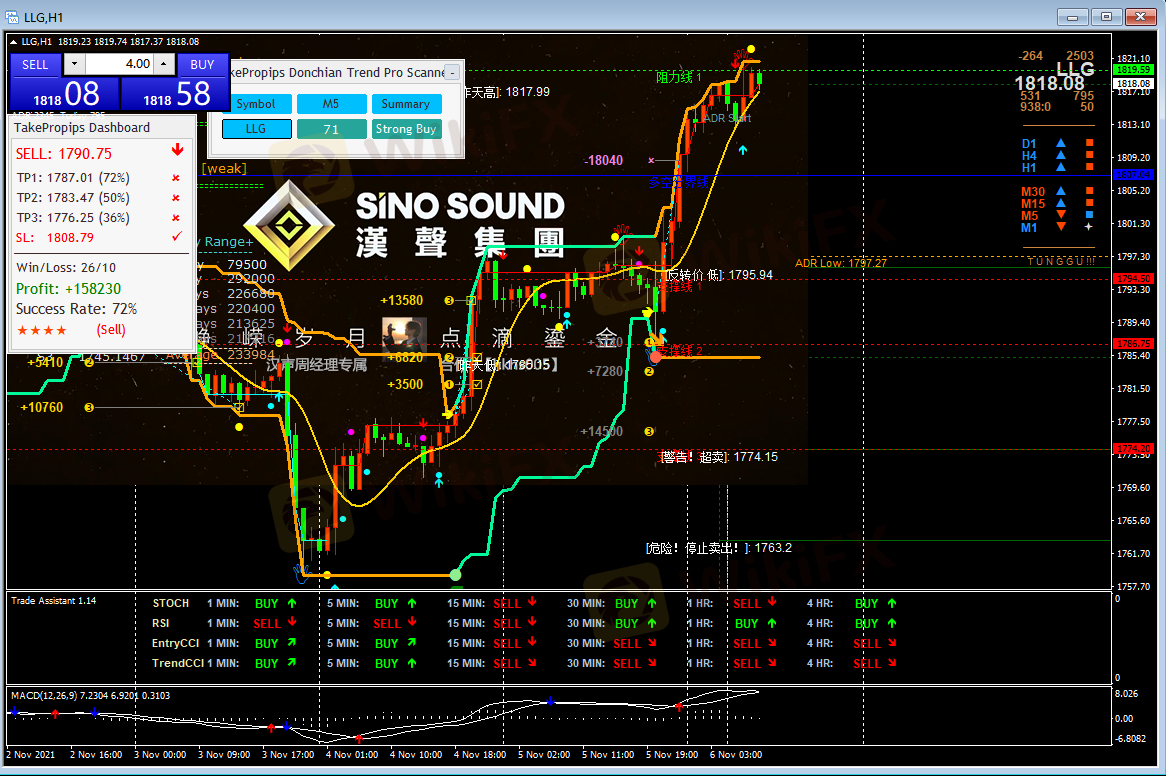 周一(11月8日)亚市早盘,金价短线急涨,金价刚刚突破1820美元/盎司关口,较日内低点拉升近10美元。本交易日,美联储主席鲍威尔、副主席克拉里达等美联储官员将发表讲话,关注亚洲市场是否可以突破上个交易日的1818最高价位,假如突破可以关注上方阻力1829。