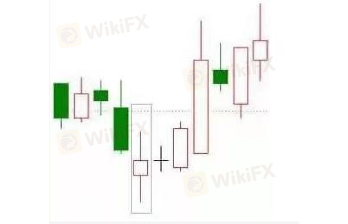 在下跌趋势中,出现一根带有较长上下影线的小阴线或小阳线,形状如螺旋桨,称为低位螺旋桨。