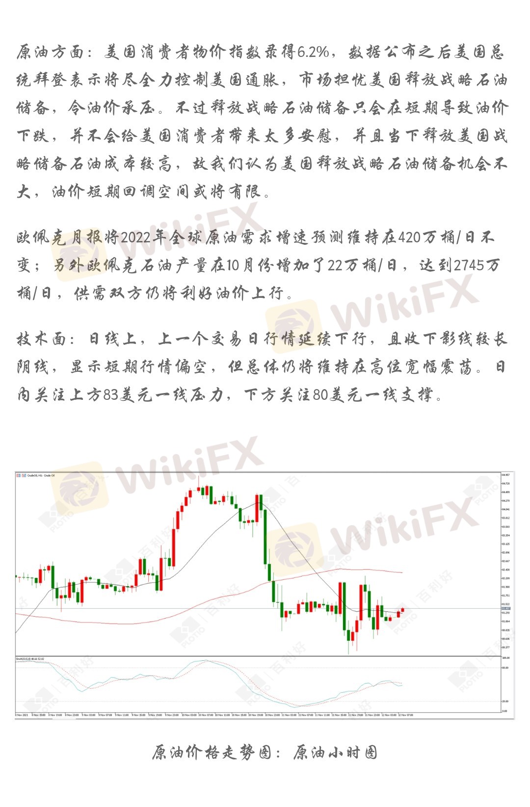原油价格走势图:原油小时图