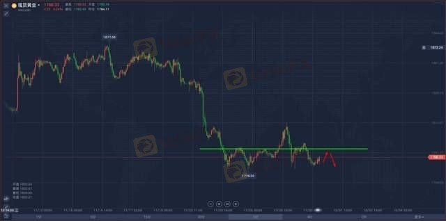 周一黄金在亚盘是震荡上涨的趋势,欧盘开始表现为上涨乏力,然后开始回落,美盘延续下跌,日线最终是反转收阴,在昨天强调的60日均线支撑,目前来看,则是形成了压制,所以今天关注的重点就在日线60日均线1790这里。早间开盘,黄金低位震荡,小时周期低位5日均线上穿10日均线,形成短期的支撑,走势慢涨,未表现出下行的意图,那么今天技术面的分析很简单,亚欧盘维持低位调整思路,暂时支撑放在1780,上方压制看1790附近,白盘关注这个区间,美盘确定压制去空,去看新低,毕竟目前日线周期均线压制很明显,空头排列,所以日内主要操作思路就是空,然后重点关注欧美盘市场面消息。如果今天黄金意外站上1790,那么今天看1795压制情况,不急着多,看短线走势的连续性。