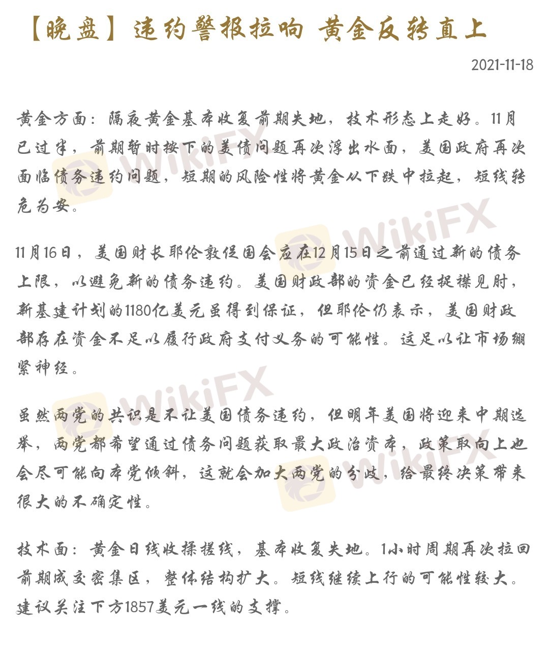 黄金方面:隔夜黄金基本收复前期失地,技术形态上走好。11月已过半,前期暂时按下的美债问题再次浮出水面,美国政府再次面临债务违约问题,短期的风险性将黄金从下跌中拉起,短线转危为安。