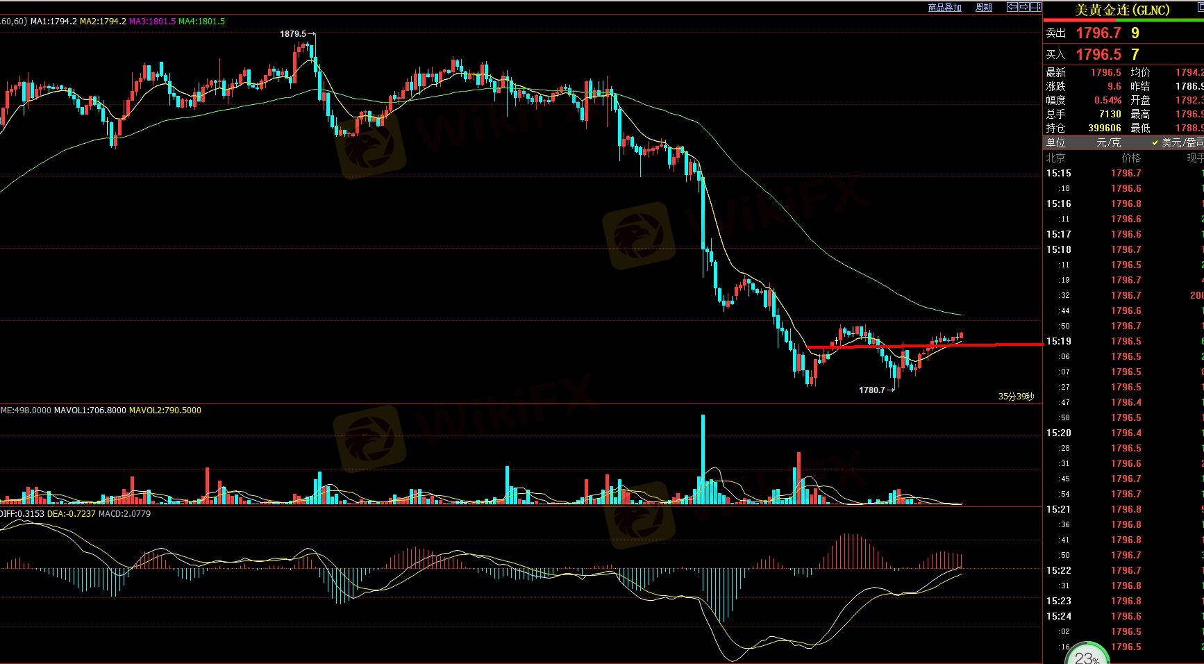 随着全球经济逐渐复苏,除美股三大指数频创新高,印度、日本、韩国、台股、中国A股等股市今年涨势也很健康。目前黄金将处于1700至1900美元区间震荡。近期黄金的上 涨,在于通胀高居不下而美联储坚持不会因通胀而加快缩债升息步伐,资金于是开始追捧 抗通胀的黄金,造成美元和黄金同涨局面。不过,如果明年导致通胀的供应链及能源两 大因素获得解决的话,美国经济成长又带动美联储开始升息周期,作为抗通胀的金价走势 便可能有所放缓,因此,明年布局金市仍需谨慎,短线来看收到1788的支撑反弹看反弹至1800美元附近,MCAD指标修复后将会再次上涨。