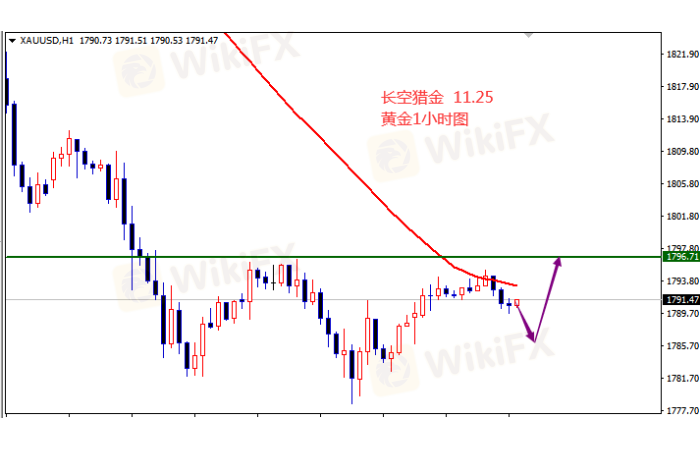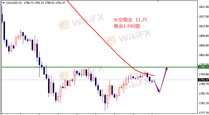 受感恩节影响,黄金日内波动不大,没什么好的交易机会,美盘还是继续按照日内1786的位置开多,没机会就早些休息,明天再战。