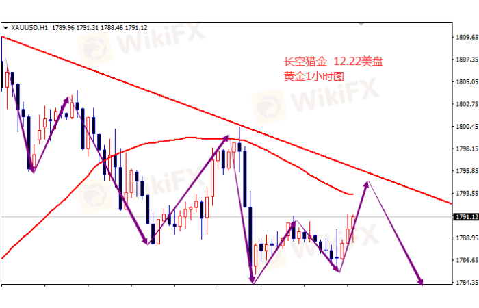 黄金触1785反弹,上方还没到压力位,目前不是追空的最佳时机,耐心等待压力再空。