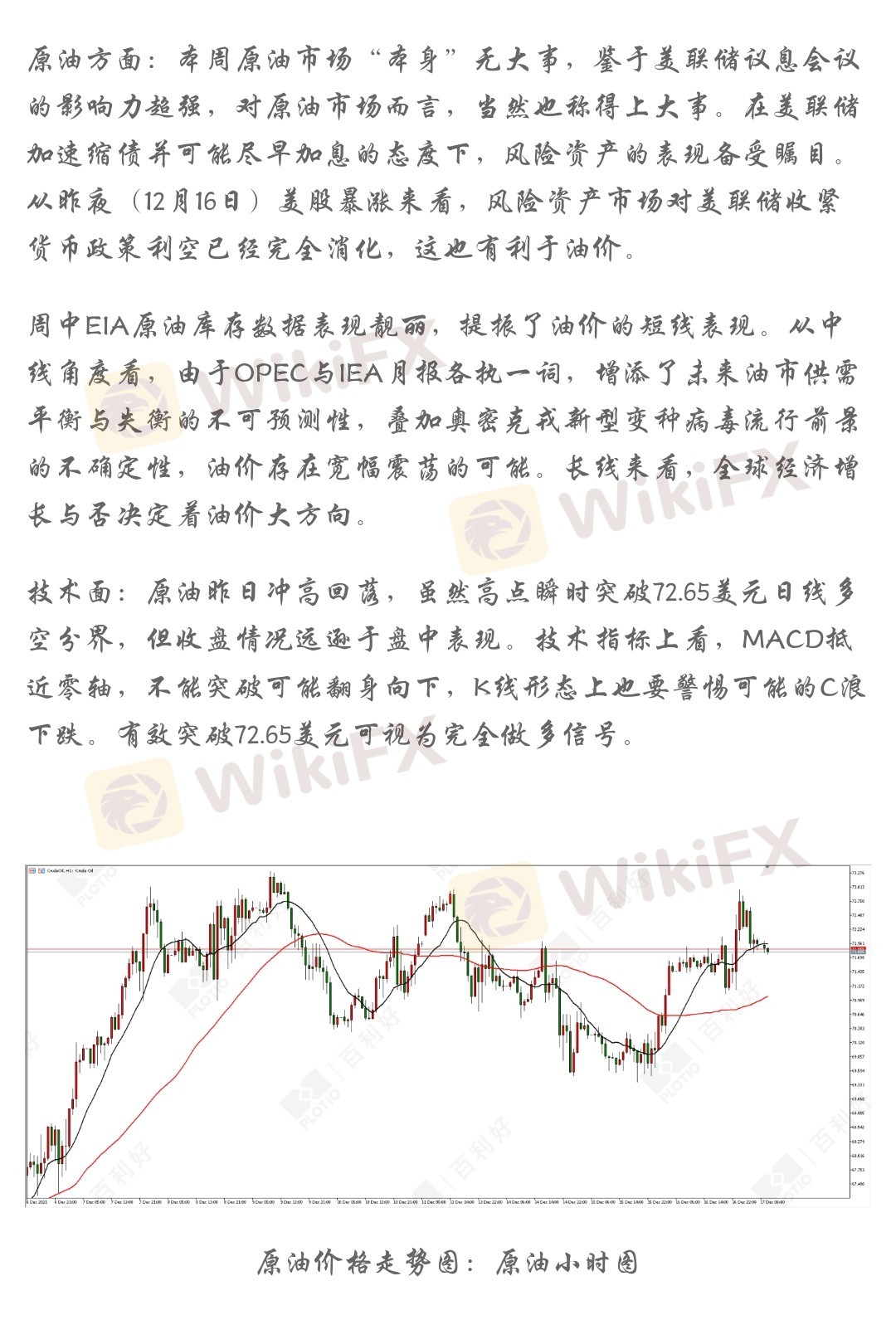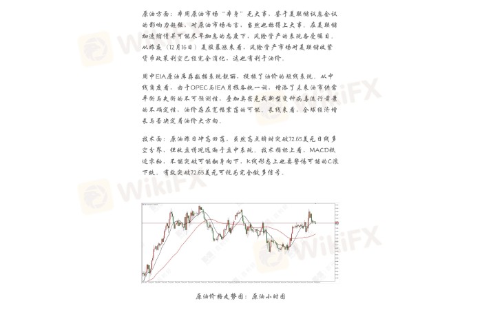 原油方面:本周原油市场“本身”无大事,鉴于美联储议息会议的影响力超强,对原油市场而言,当然也称得上大事。在美联储加速缩债并可能尽早加息的态度下,风险资产的表现备受瞩目。从昨夜(12月16日)美股暴涨来看,风险资产市场对美联储收紧货币政策利空已经完全消化,这也有利于油价。