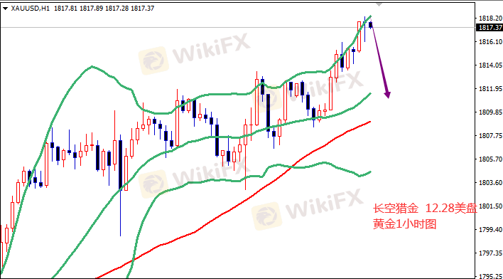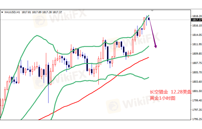 黄金日内短线走高,这个时候很多人都在追多,我们千万要谨慎,多头明显到达了压力位。黄金涨势依然还是处于疲软的态势,美盘现价1818可开空,带好止损,行情下看1805一线。