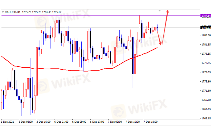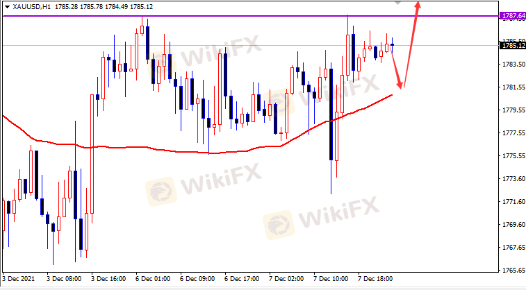 黄金昨日亚欧盘整体波动不大,美盘走了一波回撤探底后强势拉升,走出V型反转形态,多头占据优势,日内继续回撤1780多。