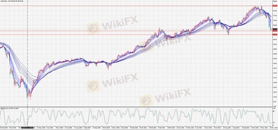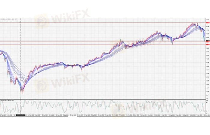 日线图,原油多次冲击85失败后开始调整。过去一周重挫15%,试探62-65强支撑区域。原油中长期涨势尚未破坏,短期关注暴跌后的修复性反弹行情。近日建议参考65止损,谨慎做多。免责声明:以上为NCE分析师个人观点,仅供参考,并不代表NCE对于投资者的任何直接操作建议,投资者据此入市风险自负。NCE官网:https://www.ncemarkets.com