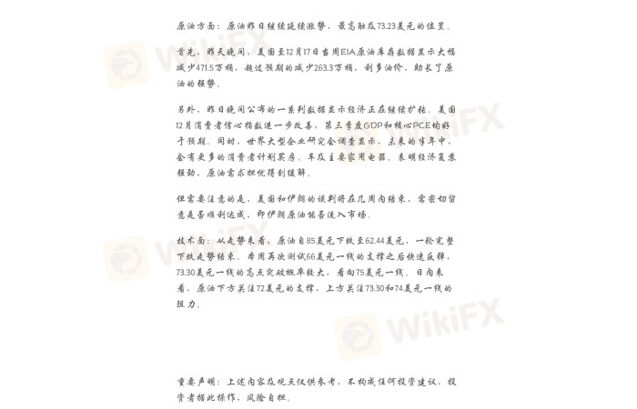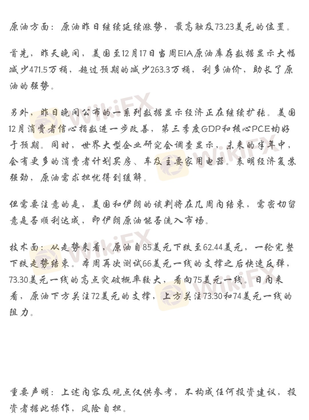 首先,昨天晚间,美国至12月17日当周EIA原油库存数据显示大幅减少471.5万桶,超过预期的减少263.3万桶,利多油价,助长了原油的强势。