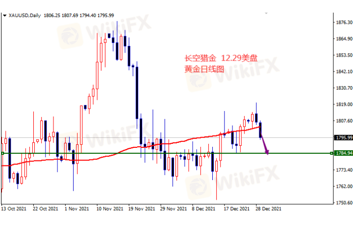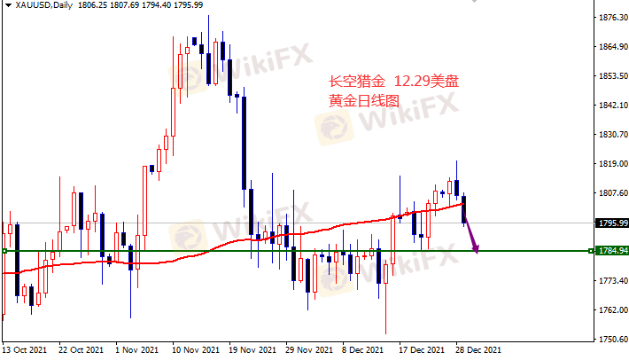 黄金1796空,止损1802,目标1785-17880。