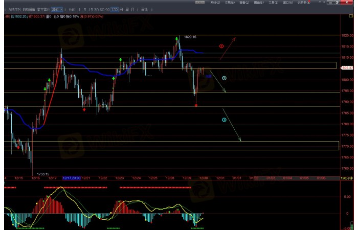 1805附近做空,止損1808,止盈目標1798,1792