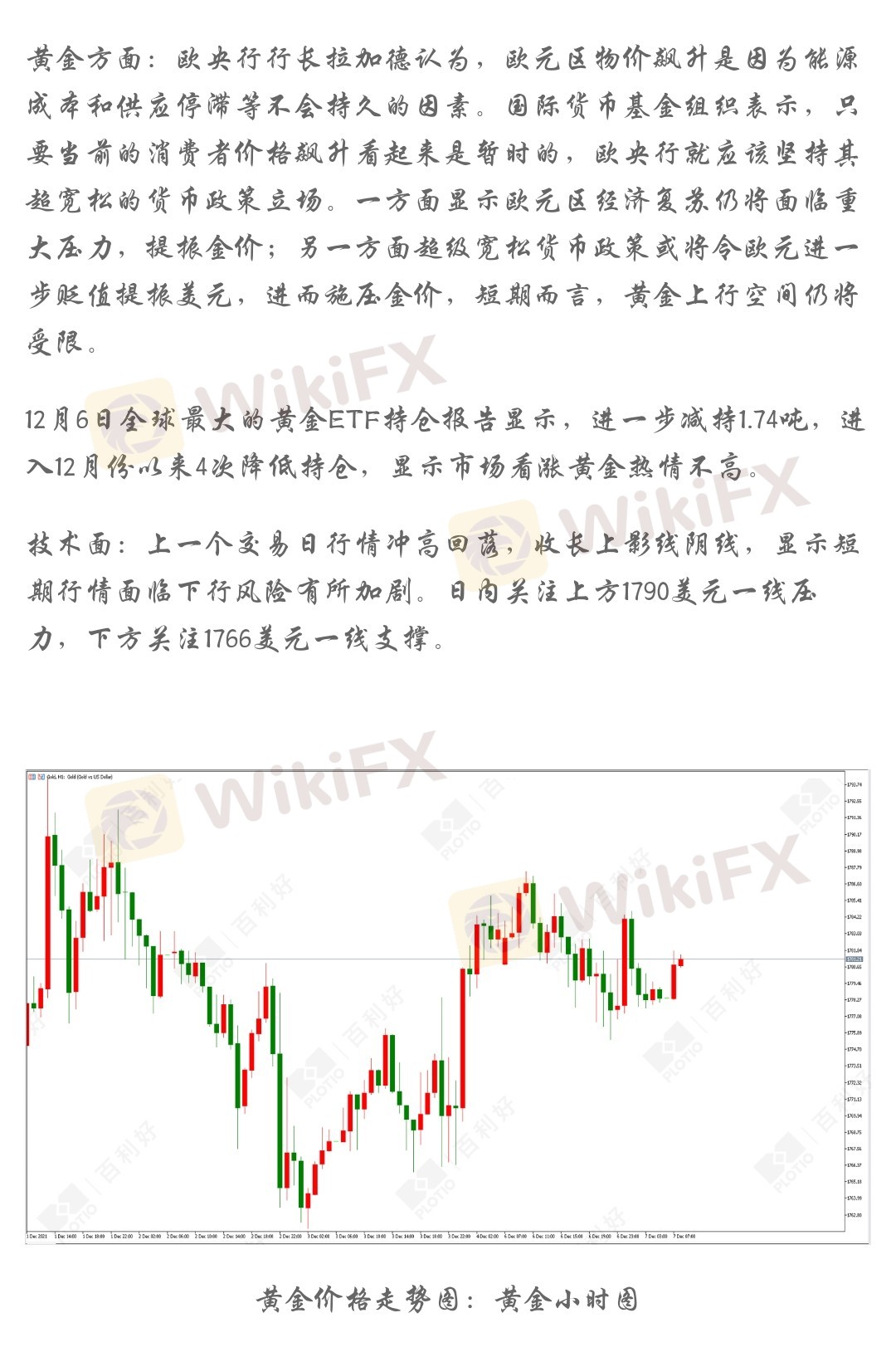 黄金方面:欧央行行长拉加德认为,欧元区物价飙升是因为能源成本和供应停滞等不会持久的因素。国际货币基金组织表示,只要当前的消费者价格飙升看起来是暂时的,欧央行就应该坚持其超宽松的货币政策立场。一方面显示欧元区经济复苏仍将面临重大压力,提振金价;另一方面超级宽松货币政策或将令欧元进一步贬值提振美元,进而施压金价,短期而言,黄金上行空间仍将受限。
