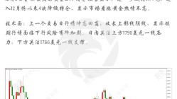 技术面:上一个交易日行情冲高回落,收长上影线阴线,显示短期行情面临下行风险有所加剧。日内关注上方1790美元一线压力,下方关注1766美元一线支撑。