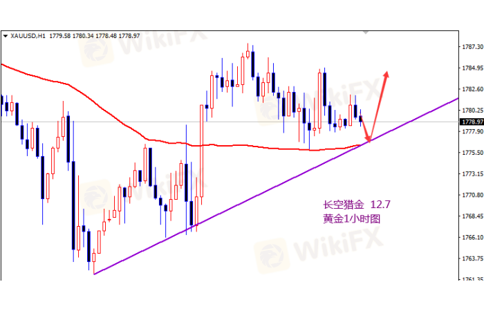 昨日的行情可谓是相当的小,短线开了个多单也只是赚了3美金就出局了。日内整体维持箱体震荡整理,下方受阻1775支撑,日内在此位置上继续看涨。