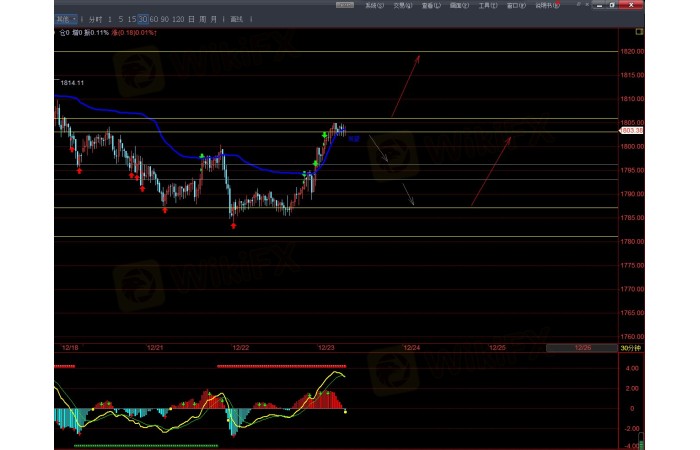 站穩1806輕倉做多,止損1802,止盈目標1810,1814,1820