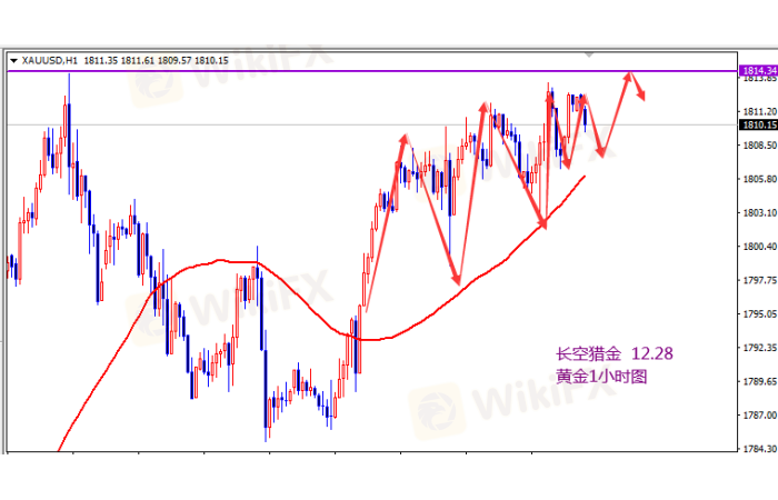 黄金继续反弹1815下空,回撤1805上多。